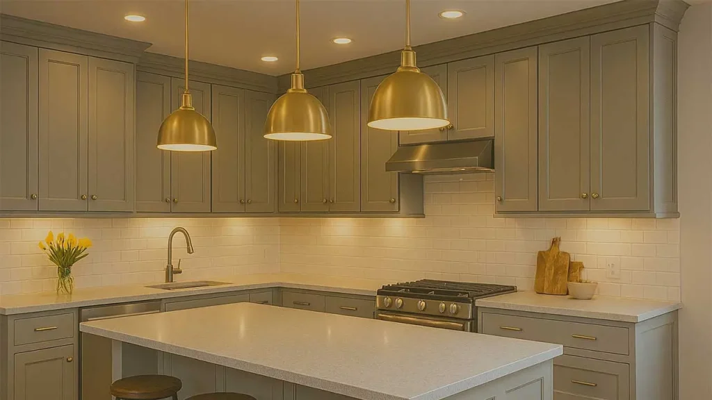 - نصب نوارهای LED زیر کابینتها برای روشنایی بیشتر و ایجاد حس گرما.